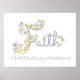 Hübsches F-Monogramm-Artenposter, ideal für ein Mädchenschlafzimmer oder ein Spielzimmer in Grautönen, Weiß, Gelb, Rosa und lila. Personalisieren Sie mit dem eigenen Namen Ihres Kindes, beginnend mit F, und Name bedeutet für eine wirklich personalisierte Touch für das Schlafzimmer oder Kinderzimmer Ihres Kindes, dieses Beispiel ist für den Namen F Glaube Eine treue Freundlichkeit Schönheit und vertrauenswürdige Freundin. Niedlicher Plakatdruck ideal für ein neues Baby-, Taufen- oder Babyduschgeschenk. © Unique F Monogramm Herz und Blume zeichnend Beschreibung und Grafikdesign von Sarah Trett. www.sarahtrett.com für www.mylittleeden.com