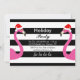 Zwei niedliche, rosa Flamingos mit Weihnachtsmannmützen auf schwarz-weiß gestreiften Untergründen schmücken diese lustige Party-Einladung. Weitere Koordinationsgegenstände finden Sie in der Holiday Collection Fa la la la Flamingo.