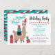 Fa la Llama Invitations de fête avec une Llama habillée pour les vacances dans un chapeau santa funky avec des rubans et des arcs autour de son long cou. Des piles de cadeaux turquoises, rouges et noirs sur la selle avec des séparateurs de sucre de canne. Retour en canne à canne à canne rayée. Correspondance de l'élément sur celui-ci ! Idéal pour des vacances, noël ou échange de cadeaux. Besoin d'aide pour la mise en page, envoyez-moi un courriel à tkatz@me.com Illustration tirée à la main par McBooboos