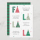 Eine niedliche und festliche Feiertagsveranstaltung mit roten und grünen Worten des FA LA LA LA LA. Die As sind als Weihnachtsbäume dargestellt. Die Rückseite der Karte weist ein grünes kariertes Muster auf.