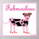 Dieses Poster zeigt die vielleicht stilvollste Kuh, die Sie je gesehen haben, mit einer Sonnenbrille und hohen Absätzen!