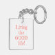 This double-sided key chain design fea "55 and fabulous" birthday celebration over a coral glitter bokeh background. The numéro 55 dominates the top of the design while fabulous, is in all caps and curved along the bottom. The back has template text "Living the GOOD life !" Personalize the text, remove the text or click customize to select a typeface style, size, and color you prefer