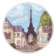 Fachgriff - diese Kunst durch Kristie Hubler, inspiriert durch den Eiffel-Turm, Paris, Frankreich und die Innengeschäftsfassaden von Paris Las Vegas, in der Impressionismustechnik, mit dem runden Turm- u. Mansardendach-Gebäude der Kunst auf der links Seite und der rechten Seite mit dem verdrehten französischen Eichenbaum auf dem Recht