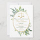 Baccalauréat en droit ou faire-part avec accents or et simple aquarelle cadre de verdure.
