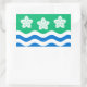 Sticker mit Design mit einer Fahne des historischen Landkreises von Cumberland in England, Großbritannien; grüne Flagge mit drei Parnassus-Blume und weißen und blauen Wellen