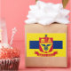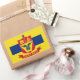 Aufkleber mit der Flagge der Stadt St. Paul, Minnesota; Flagge mit drei horizontalen Streifen blau und gelb mit rotem Emblem in der Mitte