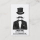 Chauffieren Sie Geschäfts-Karte mit Spitzenhut, Tuxedo, dem Schnurrbart und Bogen-Krawattengraphik. Karte hat ein Schmutzgefühl zu ihr. Völlig kundengerecht, geben Sie zusätzliche Information an zurück der Karte ein. Vervollkommnen Sie für einen Fahrer, einen Limousinenfahrer, einen Taxifahrer oder einen Kurier.