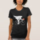 Die Fahrradbride hat eine Radlerin in Weiß mit einem fließenden Brautschleier an ihrem Helm und einem Strauß Blume in der Hand.