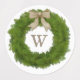 Dieses Label hat einen hübschen immergrünen Zypressenkranz mit einem Schleifenband in einem Bogen. Passen Sie es mit Ihrem Monogramm oder einem beliebigen Buchstaben Ihrer Wahl an.