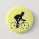 Im Fahrradraum ist ein schwarzer männlicher Radfahrer auf einem schwarzen Fahrrad mit einem oberen Hut anstelle eines Helms untergebracht.