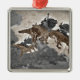 Vintages Schwarz-Weiß zeichnend aus dem 19. Jahrhundert. Bilder zeigen Pferde und Reiter, die den Himmel überqueren, als leuchtende Schläge.