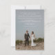 Célébrez les nouveaux Monsieur et Madame avec cette annonce de mariage et invitation élégante et charmante ! Ce design présente un style moderne et un espace pour que vous puissiez afficher l'une de vos photos de mariage incroyables sur le devant et une seconde photo au dos. Il comprend également un calque dégradé noir dont vous pouvez ajuster le placement pour mettre en valeur votre texte. Pour ajuster la photo, déplacez simplement le calque de la photo au-dessus du calque dégradé, puis revenez-y une fois terminé.