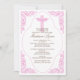 Commencez votre événement du bon pied avec notre élégant cadre antique rose présentant des fioritures délicates avec une croix bleue sur fond blanc. Invitation de baptême / christening pour bébé fille. Facile à personnaliser, il suffit d'ajouter les informations de votre événement et vous êtes prêt à partir.