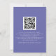 Texte de mariage avec QR code bleu Nous nous marions Ajoutez votre code QR au site web de votre mariage au verso, cela en fait une option pratique pour que vos invités répondent et voient tous les détails sans avoir besoin de cartes de réponse et de détails séparées. Un design simple mais élégant sur un fond bleu-violet de pervenche. L'ensemble stylisé du texte Nous nous marions est mis en avant en haut. Le reste du texte peut être facilement personnalisé. Les couleurs du texte et du fond peuvent être modifiées si vous le souhaitez pour mieux correspondre à votre thème de mariage via l'option de personnalisation avancée.