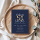 En faisant 50 avoir l'air bonne invitation d'anniversaire d'effet or. Texte de script moderne bleu marine. Partie d'une collection.