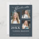 3 cartes de faire-part de graduation photo modernes. Ce design personnalisé combine écriture manuscrite, style calligraphie avec texte de mode moderne en blanc et gris sur un arrière - plan bleu foncé élégant. Le dos de la conception offre des champs de texte personnalisables pour votre faire-part, des informations pour les diplômés et des plans d'avenir. Pour voir d'autres articles comme celui-ci, visitez mon magasin ici à "www.Zazzle.com/LakeViewCardCo". Merci
