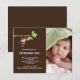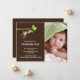 Notre petit singe est arrivé annonce de naissance de bébé garçon est un doux moyen d'annoncer à votre famille et à vos amis que votre petit chéri est arrivé. La carte d'annonce de photo présente le plus mignon petit singe suspendu à une branche d'arbre sur un fond marron avec un accent à pois. Ajoutez votre photo et vos informations et vous êtes prêt à partir ! ©cocoa studio