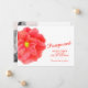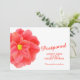 Carte de report de mariage avec une œuvre d'art de fleur de camélia rouge aquarelle sur le devant et votre propre message et photo de couple au verso. Autres articles de printemps assortis disponibles. Art et design aquarelle de Sarah Trett www.sarahtrett.com pour www.mylittleedenweddings.com