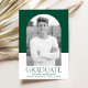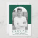 Faire-part de graduation simple et élégante avec la photo du diplômé à l'intérieur d'une arche avec un arrière - plan de bloc de couleur verte et blanche. "Graduate" est affiché en lettres vert moderne avec le nom du diplômé, l'école, et l'année de diplôme montré ci-dessous.