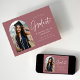 Faire-part tendance de remise des diplômes avec la photo du diplômé encadrée par une arche rose poussiéreuse avec "Graduate" dans un script blanc manuscrit. Personnalisez l'avant de la carte de faire-part de remise de diplômes en arc en ajoutant le nom du diplômé, l'année de remise de diplômes, le nom de l'école et les plans futurs. La faire-part de graduation de la photo s'inverse pour afficher un rose poussiéreux et un motif à pointillés blancs. Le faire-part convient aussi bien aux diplômés du secondaire qu'aux diplômés du collégial.