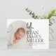 Notre faire-part de naissance minimaliste pour bébé dispose d'un cadre photo en arc et d'une typographie moderne. Personnalisez ce faire-part bébé moderne en ajoutant votre photo, message, statistiques de naissance et d'autres détails. Photos de prostooleh / Freepik.