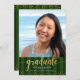 Soyez fier, réjouissez-vous et annoncez au monde que votre groupe favori a atteint son jalon avec cet invitation faire-part étonnant, simple, moderne et personnalisé. Scénario de calligraphie manuscrite à parties scintillant d'or brillant, élégant, blanc sans serif typographie et une photo de votre choix superposent un arrière - plan rayé vert chasseur. Personnalisez le texte personnalisé avec le nom de votre diplômé, le nom de l’école, l’année de cours et la date de fin d’études. Au verso, ajoutez votre note personnelle, la prochaine école où ils vont, les renseignements sur la fête, etc. Des cartes de remerciements, des toppers casquettes, des ventilateurs, des serviettes, des assiettes, des bannières et d'autres cadeaux de remise de diplômes sont également disponibles dans cette collection branchée et élégante. Garanti d'ajouter du plaisir élégant à leur occasion spéciale! Il suffit de remplacer l’échantillon de photo par un de vos propres, de taper les informations de votre grade, de customiser le message au dos, et vous pouvez facilement personnaliser cette véritable invitation de faire-part de graduation de feuille d’or. S'il vous plaît, envoyez-moi un message avec toute question ou demande.