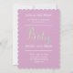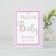 Une nouvelle carte de Faire-part bébé de bienvenue conçue en violet doux et blanc avec un texte coloré : BÉBÉ, avec le nom du bébé et la date de naissance sur un arrière - plan blanc avec une bordure de coeur violet. L'envers inclut vos Détails de Faire-part de naissance, sur un arrière - plan mauve doux. Pour personnaliser, il suffit d'insérer le nom du bébé et d'autres détails dans notre modèle pas à pas, en remplaçant l'exemple de texte. C'est rapide et facile.
