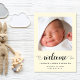 Une simple faire-part de naissance jaune pastel et neutre pour les hommes et les femmes. Le recto présente la photo de votre nouveau-né, son nom, sa date d'arrivée et ses statistiques de naissance, et son "bienvenue" écrit dans un script élégant avec un battement de coeur. Au verso, ajoutez une photo supplémentaire, des noms de parents et de frères et soeurs, et un message de remerciement ou un autre message.