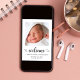 Un faire-part de naissance simple et mignon bébé garçon ou petite fille. Le recto présente la photo de votre nouveau-né, son nom, sa date d'arrivée et ses statistiques de naissance, et son "bienvenue" écrit dans un script élégant avec un battement de coeur. Au verso de la carte, ajoutez une photo supplémentaire, des noms de parents et de frères et soeurs et un message de remerciement, de visite ou autre.