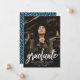 Faire-part de graduation simple avec la photo du diplômé avec "diplômé" dans une police de texte blanc tendance. Personnalisez le devant du faire-part de remise de diplômes en y ajoutant le nom du diplômé, le nom de l'école et l'année de remise de diplômes. Le faire-part s'inverse pour afficher un motif de saupoudrages blancs avec un arrière - plan bleu foncé ou la couleur de votre choix.