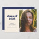 Ce faire-part de graduation d'inspiration rétro blanc cassé et bleu foncé met l'accent sur votre grade avec une seule photo sur l'avant et l'arrière. L'arrière du faire-part a également de l'espace pour écrire un court message ou mettre à jour.