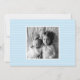 Ce faire-part de naissance est composé d'un texte simple avec une orientation latérale. Le dos offre un arrière - plan bleu qui est modifiable avec de la place pour une autre photo.