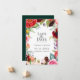 Elégante aquarelle de style bohème, fleurs, plumes et cadre de feuillage dans les tons tendance de bordeaux, rose, vert, rouge, violet et pêche, Mariage Enregistrer la carte de date. Le dos de la carte est de couleur vert émeraude.
