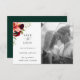 Elégante aquarelle bohème arrangement floral dans les tons tendance de bordeaux, rose, rouge et vert feuillage botanique, mariage photo Enregistrer la carte Date. Conçu pour correspondre à notre collection Bohemian Blooms. La couleur d'emballage, en vert émeraude, peut être customisée.