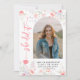 Modern elegant photo She did it pink script girl graduation announcement with pastel watercolor wildflowers.
