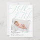 Bonjour petit un faire-part de naissance photo moderne. Elégant texte de script, photo imprimée moderne. Un aqua et un design blanc épurés, convenant à un garçon ou une fille.