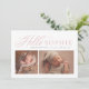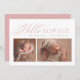 Ce faire-part de naissance à deux photos présente un élégant script "bonjour" à côté d'un nom ou d'un surnom. Il comprend également de la place pour le nom du bébé et d'autres détails ainsi qu'un carré et une photo horizontale. La couleur rose est parfaite pour annoncer une petite fille douce et l'arrière est un rose coordonné sur bande rose. Aussi disponible en d'autres couleurs.