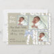 Annoncez la naissance du bébé avec trois photos et beaucoup de place pour le texte sur les deux faces de cette jolie annonce photo avec un bouleau ; ruban bleu doux et bouleaux blancs de papier.