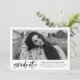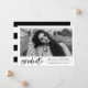 Annoncez votre diplôme avec nos annonces de graduation design et moderne Watercolor Brush Script! Les annonces de graduation modernes affichent la photo du diplômé encadrée en blanc avec "diplômé" dans un script de brosse à aquarelle noire tendance. Ajoutez le nom du diplômé, l'école, l'année de remise des diplômes et les plans futurs. Le faire-part revient à un arrière - plan rayé noir et blanc avec espace pour des photos et du texte supplémentaires.