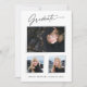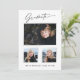 Trois cartes photo, tendance, modernes et élégantes de faire-part de graduation, avec des éléments de design de texte moderne avec script d'encre de calligraphie. Les photos des diplômés sur le devant de la carte sont mises en évidence avec une délicate et minimaliste planche à dégradé. Le dos de la carte offre des espaces de texte personnalisés pour des informations sur votre diplôme ou peut être effacé si vous souhaitez écrire un message à la main. Noir et blanc ou customiser facilement l'arrière - plan pour correspondre à la couleur primaire de votre école ou à n'importe quelle couleur de votre choix. Parfait pour les étudiants de niveau secondaire, collégial et universitaire.