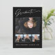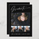 Quatre cartes photo, tendance, modernes et élégantes, avec des éléments design de texte moderne avec script d'encre de calligraphie. Les photos des diplômés sur le devant de la carte sont mises en évidence avec une délicate et minimaliste planche à dégradé. Le dos de la carte offre des espaces de texte personnalisés pour des informations sur votre diplôme ou peut être effacé si vous souhaitez écrire un message à la main. Noir et blanc ou customiser facilement l'arrière - plan pour correspondre à la couleur primaire de votre école ou à n'importe quelle couleur de votre choix. Parfait pour les étudiants de niveau secondaire, collégial et universitaire.