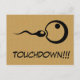 Carte postale de grossesse cool. Carte postale en carton comique cool avec icône de sperme et d'oeuf et texte : Touchdown ! La façon parfaite et originale de dire à vos amis que vous attendez un bébé!