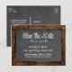 Carte postale d'annonce de date de mariage en tableau noir en bois rustique. Personnalisez avec n'importe quel texte.