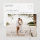 Cette carte postale Save the Date présente un script moderne et décontracté. Le texte est en noir.