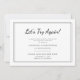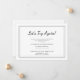 Annoncez à votre famille et à vos amis un changement de date de mariage avec cette carte simple et élégante. Le design présente un fond blanc épuré avec une bordure noire et le message « Essayons à nouveau ! » Le texte personnalisable vous permet d'ajouter les noms des mariés ainsi que la nouvelle date et le lieu du mariage.