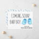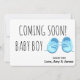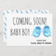 C'est une jolie et adorable chaussures bébé garçon qui vient bientôt script bleu carte de faire-part de grossesse.