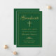 Envoyez à votre famille et à vos amis une élégante faire-part de graduation chrétienne avec un arrière - plan vert avec de la calligraphie en faux or et traversez bordé par une mince ossature en or. Personnalisez avec vos détails de graduation. Conçu par Susan Coffey.