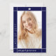 Classe bleu marine moderne de 2025 graduation photo Faire-part. Ce design moderne présente une toile de fond bleu marine sophistiquée qui améliore magnifiquement la photo du diplômé, élégamment encadrée par une bordure blanche. Le nom du diplômé et les détails importants sont placés stratégiquement à l'extérieur du cadre, assurant leur importance. Au contraire, vous trouverez une autre photo captivante et toutes les informations essentielles sur l'obtention du diplôme, créant un souvenir précieux pour les années à venir.