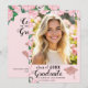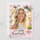 Créez un élégant faire-part de graduation couleur rose vif avec la photo de votre diplômé pour la classe de 2025. Ce design est décoré d'un casquette diplômé et d'illustrations de diplôme dans les couleurs roses or, et de roses roses dans le style aquarelle. Le modèle facilite la personnalisation de la faire-part avec un nom, une année, le nom de l'école, la photo et d'autres textes.