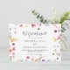 Cette faire-part classique et colorée à l'étage sauvage présente un beau design moderne. Le design présente des fleurs sauvages jaunes, violettes et blanches avec du feuillage dans un arrière - plan rose et vert aquarelle. Personnalisez la carte avec les détails de votre mariage, et utilisez le modèle au dos pour annoncer un changement d'adresse, pour les informations de réception, ou tout autre détail que vous souhaitez partager.